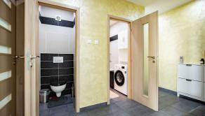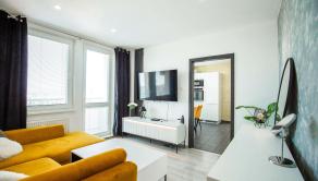 Byt sa predáva kompletne zariadený - pekná priestranná sedacia súprava, podsvietený nábytok v obývacej izbe, moderná pohodlná posteľ atď.
